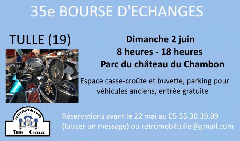 Bourse d'échange - Espace casse-croûte et buvette, parking pour véhicules anciens - Entrée gratuite -