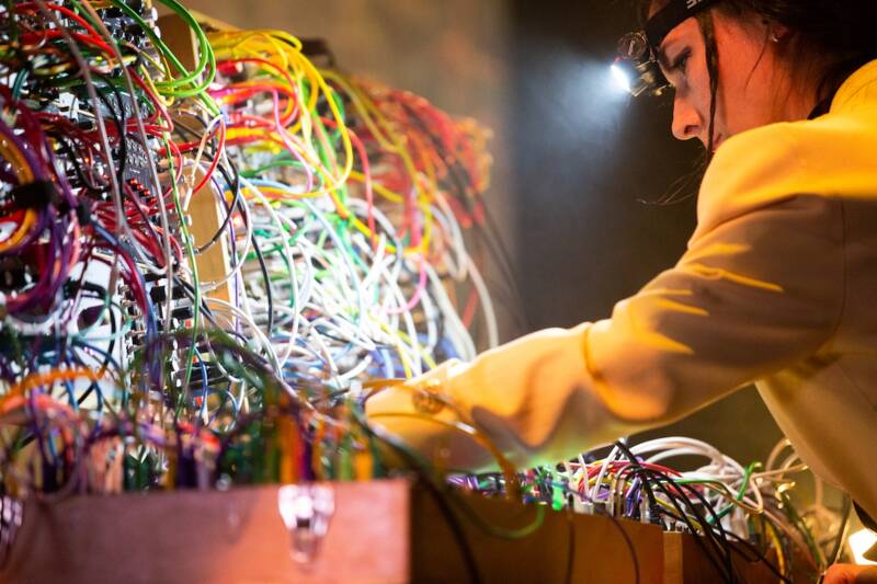 Hélène Vogelsinger est compositrice, sound designer, vidéaste et directrice artistique du label Microsmose. À travers une pratique singulière mêlant musique, image et architecture sonore, elle développe des oeuvres immersives et introspectives, profondément reliées au vivant. Elle explore, à l’aide de son synthétiseur modulaire, des lieux abandonnés ou isolés et y interprète ses compositions. Ces espaces deviennent des partenaires de création : porteurs d’énergie, de mémoire et de résonance, ils influencent sa manière de jouer, ses gestes et sa perception du temps.