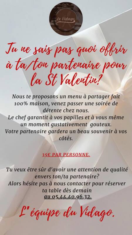 Menu : Mise en bouche du chef - Entrée : Foie gras et son chutney d'oignons avec toast brioché ou Noix de St Jacques, gambas poêlées accompagné d'une crème d'agrumes - Plat : Filet de bœuf Rossini et pommes de terre grenailles ou Médaillon de lotte rôti sauce rouge et risotto aux champignons - Dessert : Mystère du Vidago ou Craquissim au chocolat