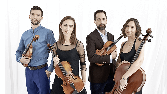 Le Tana Quartet – soit Antoine Maisonhaute et Ivan Lebrun au violon, Julie Michael à l’alto et Jeanne Maisonhaute au violoncelle – survole depuis 2010 le répertoire contemporain. Toujours prêts à décloisonner les genres, ils aiment créer des liens entre les oeuvres passées et présentes. C’est encore vrai dans ce programme qui s’articule autour d’un quatuor à cordes inédit de Philipp Glass, grand nom de la musique sérielle américaine avant-gardiste. Le Tana Quartet s’empare de ce King Lear composé en 2019 pour une comédie musicale de Broadway et s’accorde à merveille à cette partition impétueuse, répétitive et lyrique qui dépeint la turbulence et le désespoir au cœur de la tragédie de Shakespeare.
