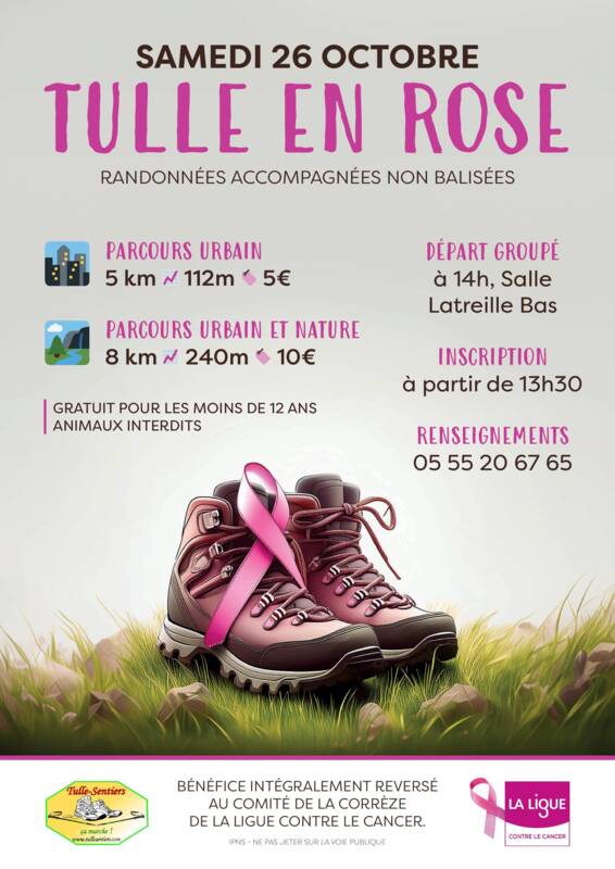 Parcours urbain : 5 km - dénivelé 112 m tarif : 5 € - Parcours urbain et nature : 8 km - dénivlé : 240 m - Tarif : 10 € - Gratuit pour les moins de 12 ans - Animaux interdits - Départ groupé à 14 h à la Salle Latreille Bas -