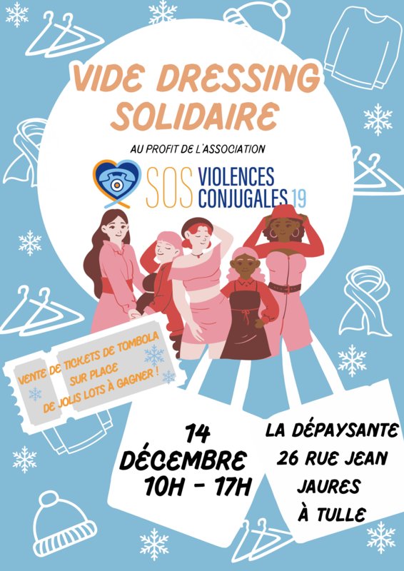 Envie de renouveler votre garde-robe, tout en faisant un beau geste pour la planète et en soutenant notre association ? Faites-vous plaisir avant les fêtes de fin d’année en vous rendant à la 2ᵉ édition de notre Vide-Dressing solidaire.100 % de l'argent récolté servira à financer nos actions au bénéfice des femmes, enfants et hommes victimes de violences.