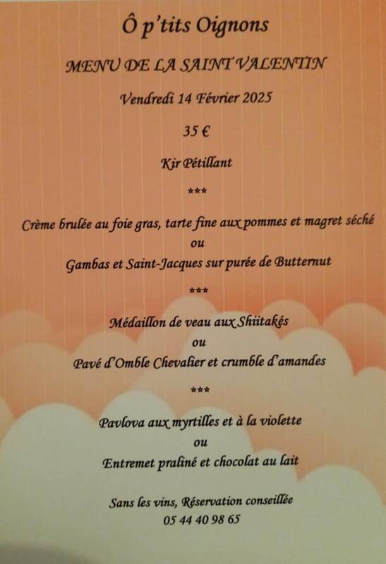 Restaurant O P'tits Oignons : Menu Saint Valentin