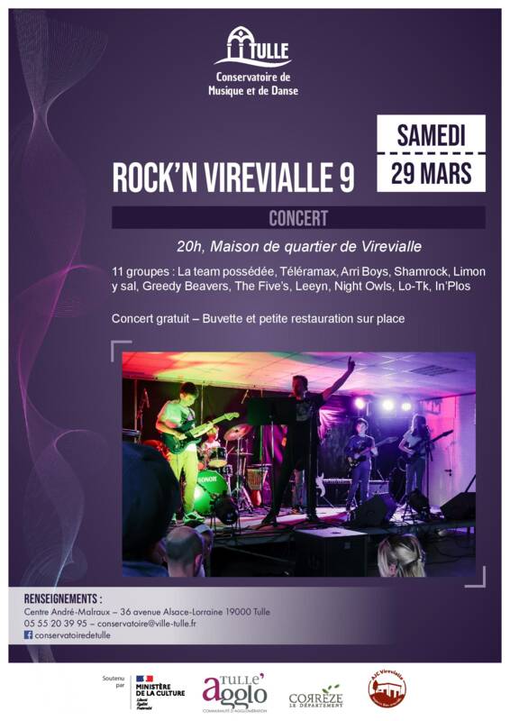 Le Conservatoire de musique et de danse de Tulle, en partenariat avec l'association Jeunesse et Culture de Virevialle, organise une scène ouverte avec plusieurs groupes de musiques actuelles :